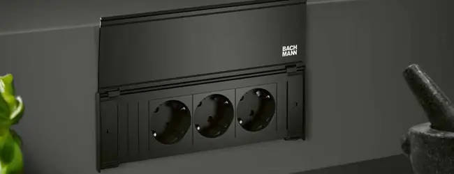 In vielen Haushalten ist die Küche der Mittelpunkt des Zuhauses. Hier wird mit der Familie und Freunden gekocht, gegessen und kommuniziert. Damit die nächste Steckdose für den Pürierstab, das Tablet oder den Mixer nie weit weg ist, können leicht zugängliche Steckdosenleisten in die Arbeitsplatte, Ecke oder an der Wand befestigt werden. Bei den sogenannten Anschlussfeldern bietet Bachmann verschiedene Lösungen speziell für die Küche an.