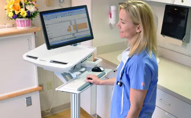 Visitenwagen & Dokumentationswagen für die Pflege / Klinik, mit Laptop, PC oder Monitor Halter, Akku, TV Wandhalter